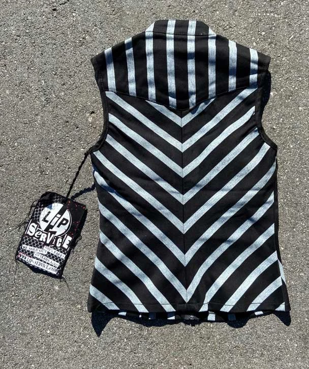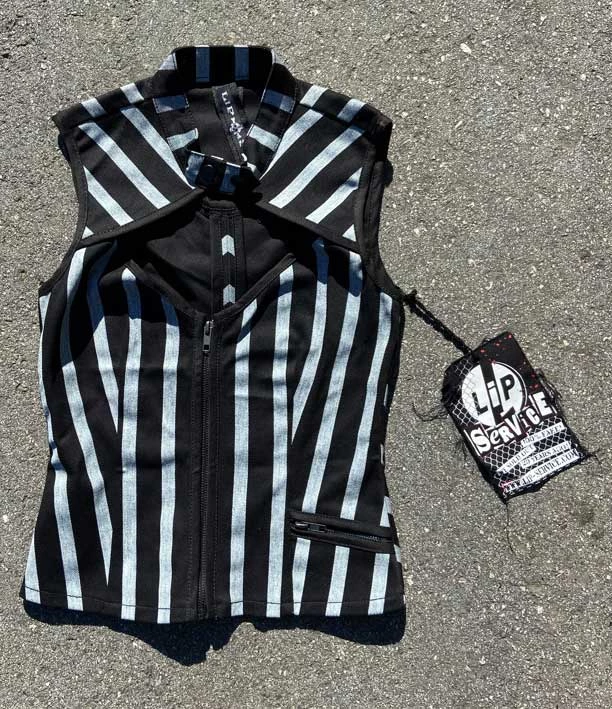 Psycho Circus Black and White striped stretch twill vest w/ Zip Front and Peek a boo front New Never Worn