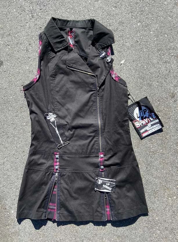 Lip Service Sleeveless Punk & Disorderly Dress w/ pink punk plaid contrast and pins and Stud details New Never Worn