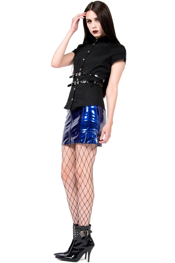 Lip Service Vintage “CLASSIC VINYL” STRETCH STRETCH ELECTRIC BLUE MINI SKIRT WITH SIDE.BACK PLEATS….VICE BY LIP SERVICE ….