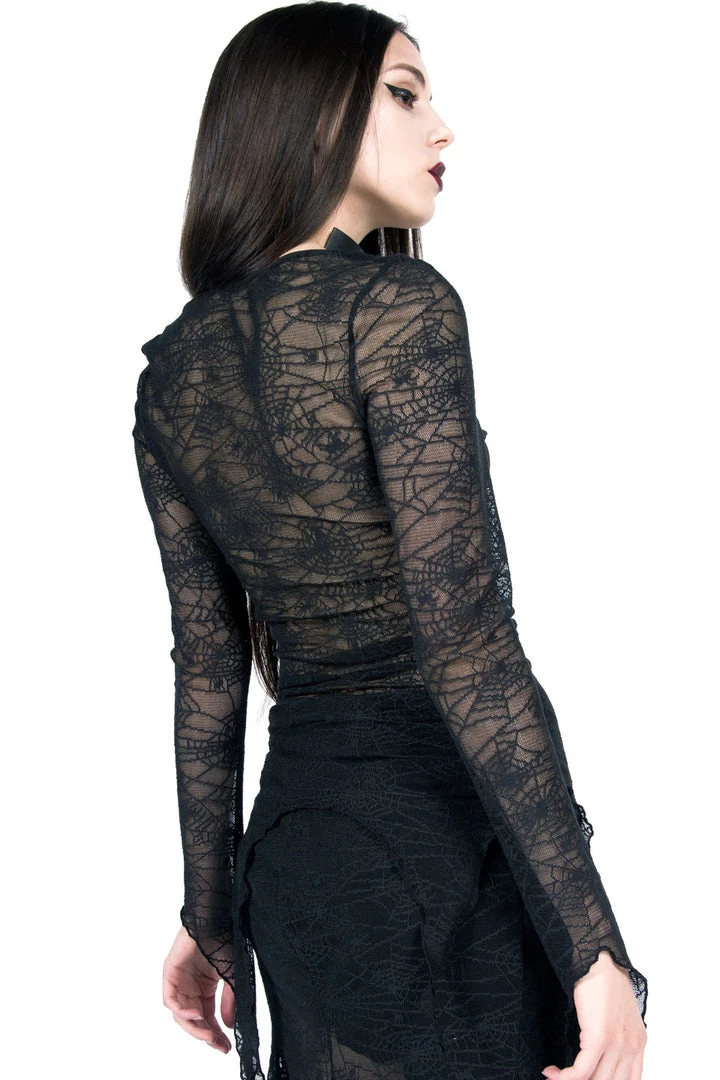 Lip Service vintage Web Mesh top, perfect for any witching hour !! Long sleeved, front is lined….Super deep V neck, Style #26-103 size M