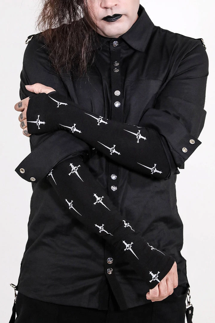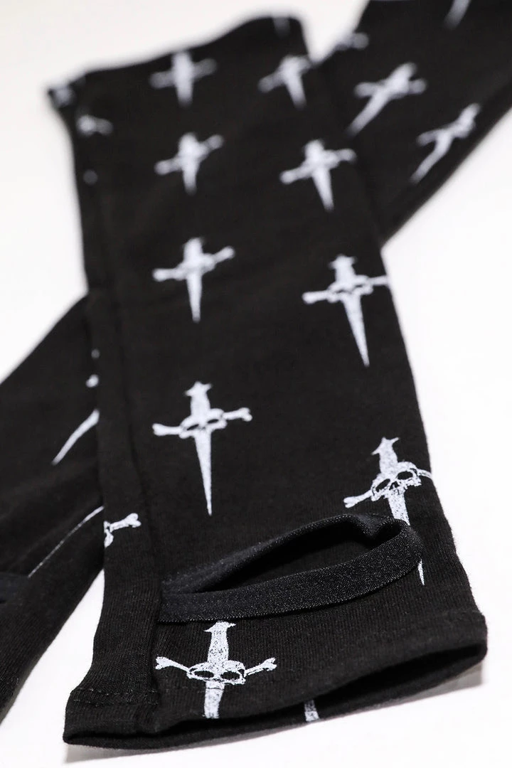 Lip Service Elbow Length Fingerless Arm Warmers featuring the classic all over DAGGER print and thumbholes. Cozy, Sexy and Unisex!