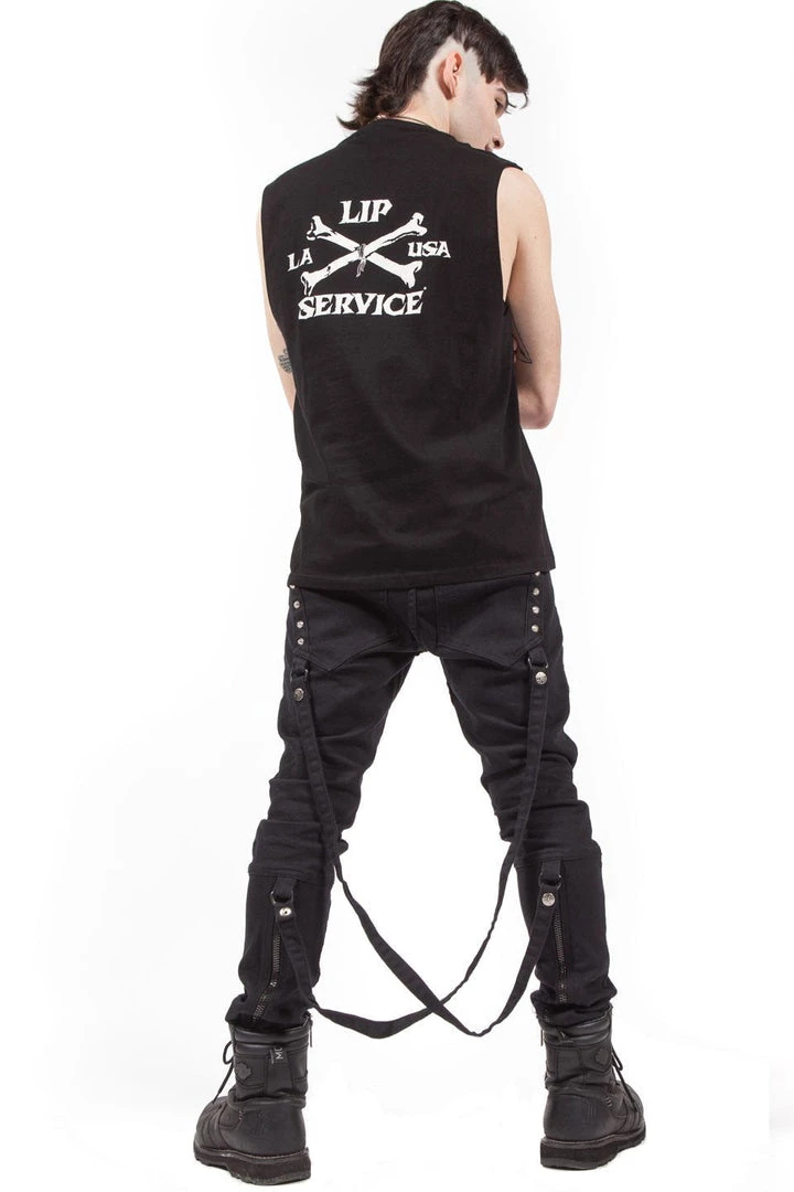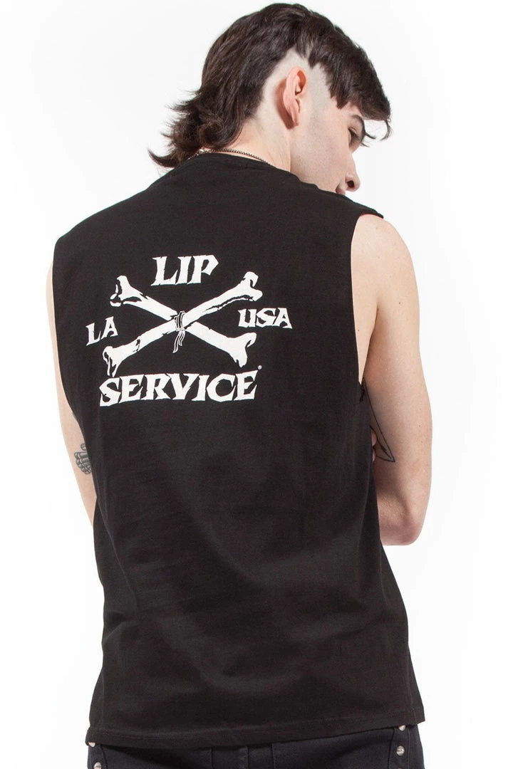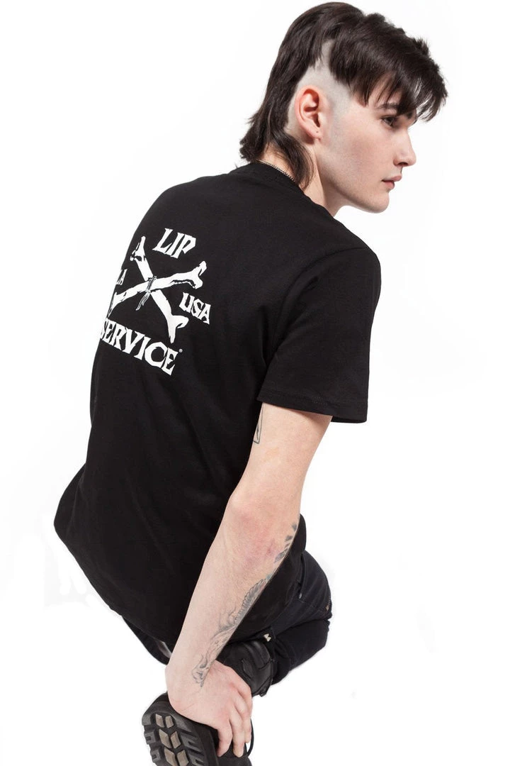 Lip Service classic DAGGER men’s tee!! Put this iconic tee on and get ready to feel the GOTH ROCK!!! Cross Bones print is on the BACK.