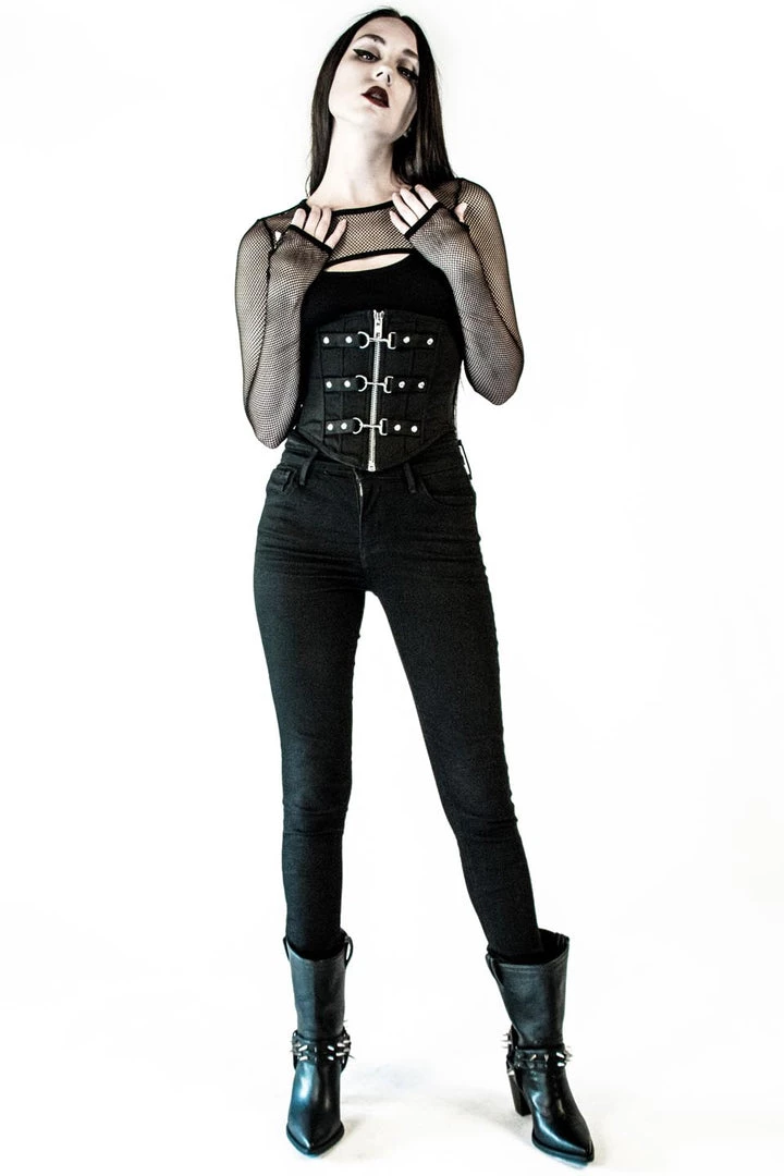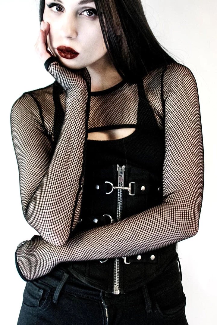Lip Service Vintage Black Fishnet Shrug w/ Lace Up Back Detail & Thumbholes.