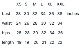 bust 28 30 32 34 36 38 inches
