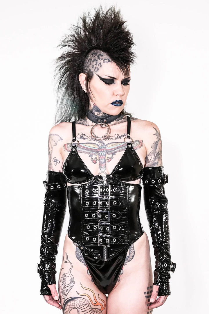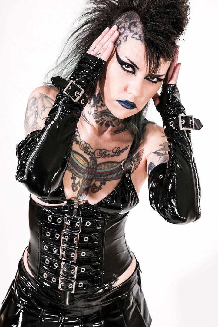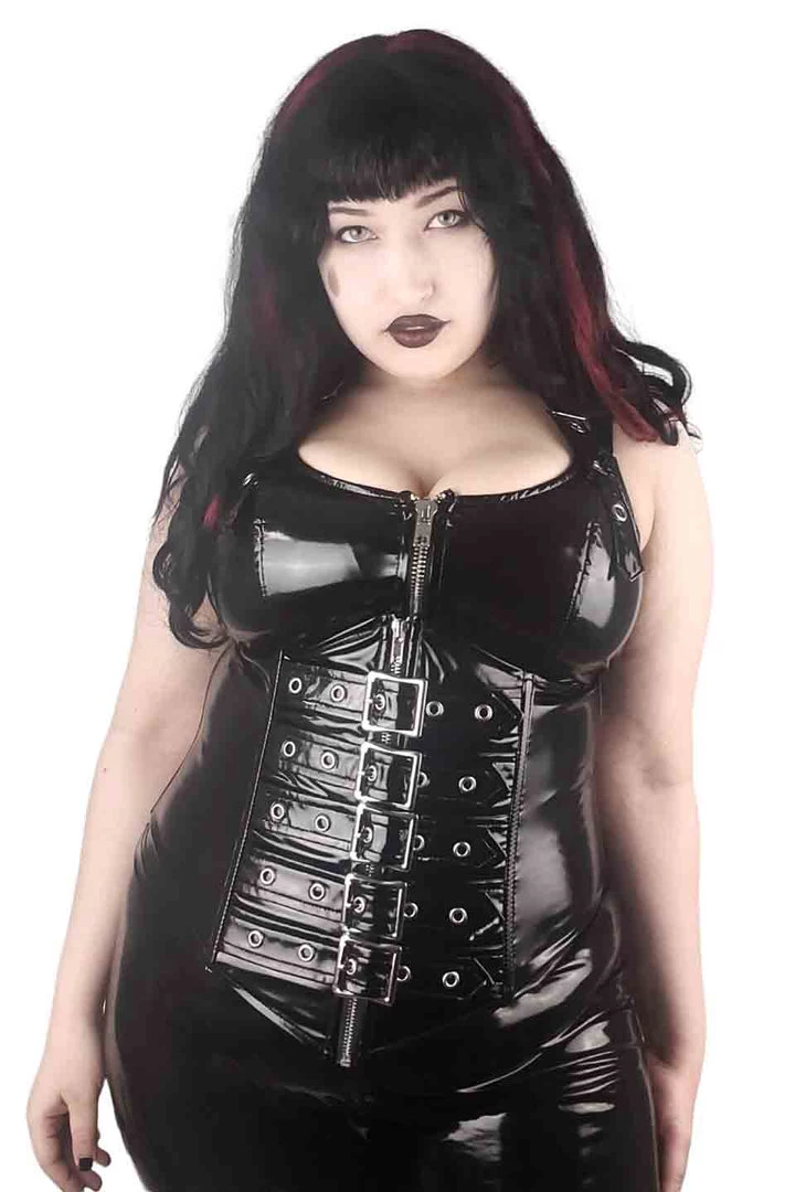 Our classic black vinyl waist cincher with steel coil boning, zipper closure and 5 buckles up the front you can adjust for the look and feel you want!! Your go to Vinyl Gear!!! Now available in PINK!