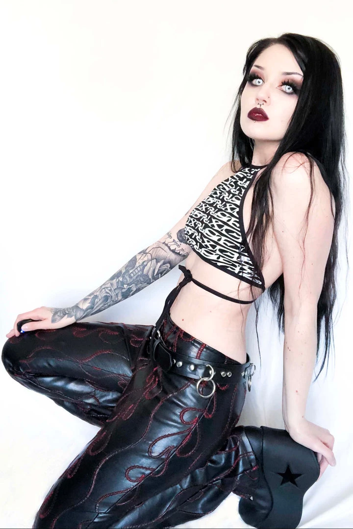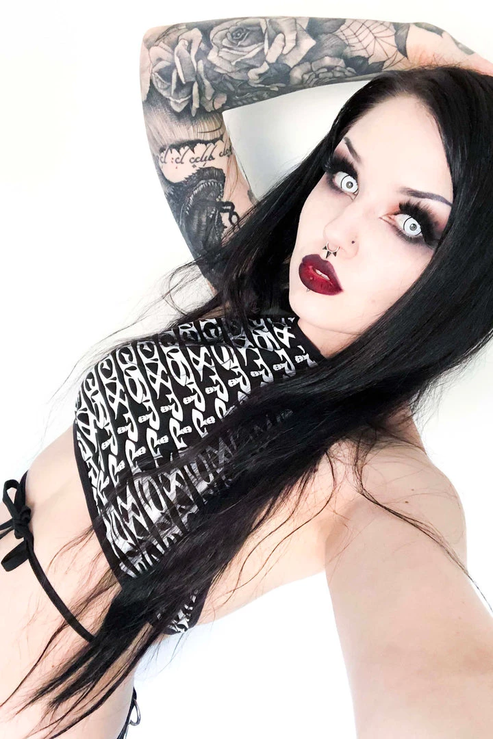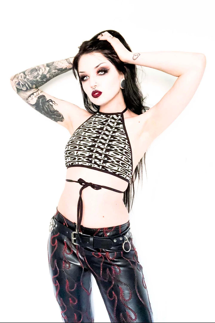 The classic SEX? print is back in a limited edition tie back halter top. Made from vintage fabric so get it while you can! Ties in back or front. STOP STARING!