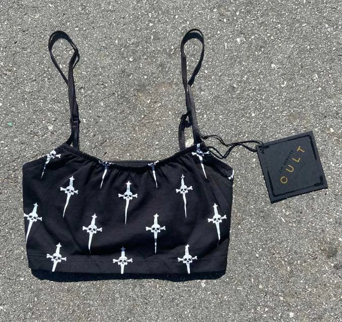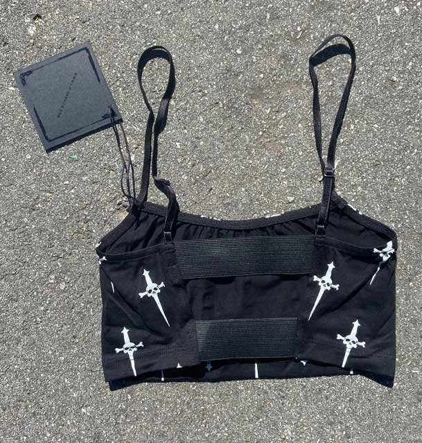 Vintage Lip Service Dagger print Bra top with hook & Eye center front closure and satin bra straps