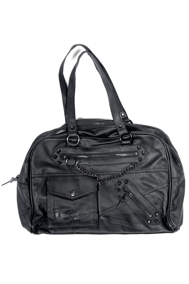 Lip Service Vintage Bagz, Black Vegi leather bag with zipper/ chain details….fully lined, new…Black hardware….