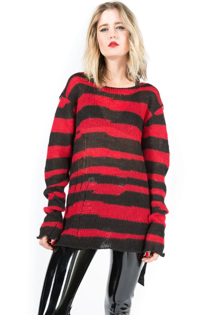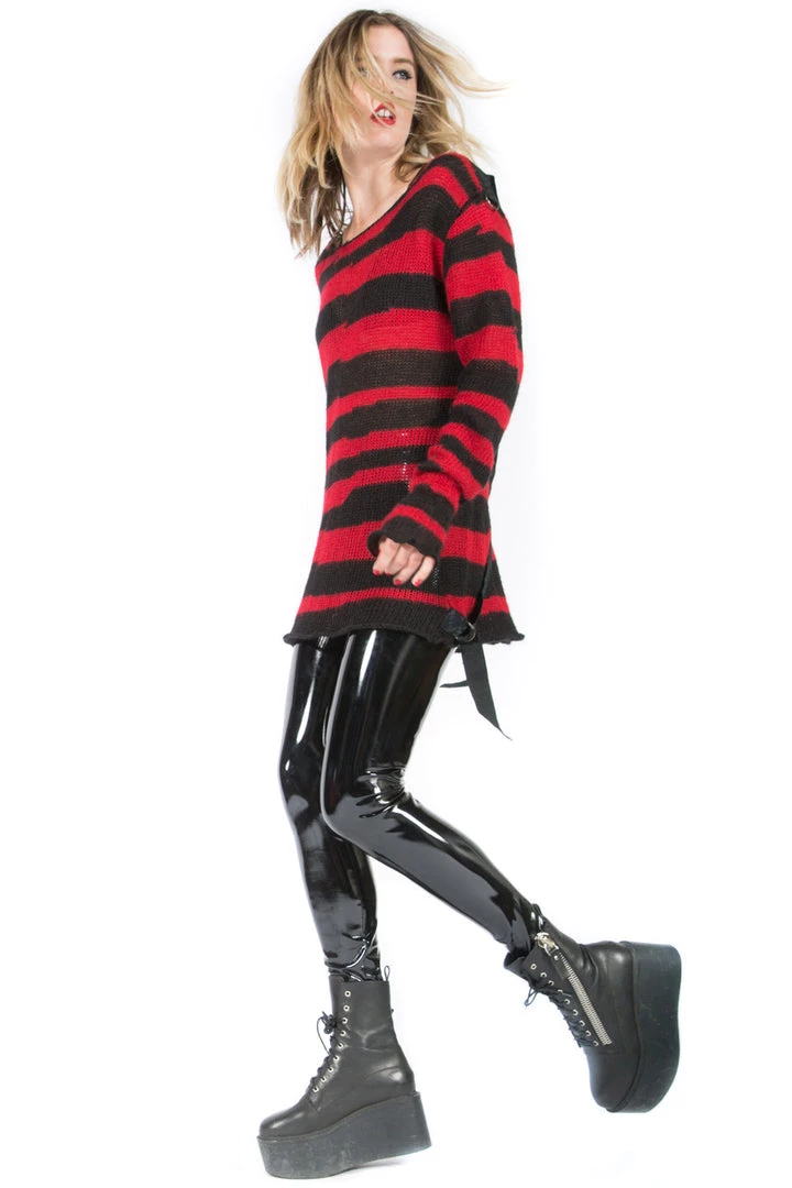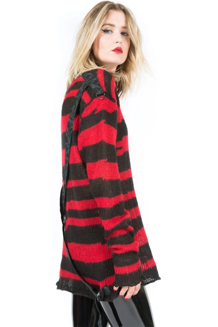 “Nevermind the Mohair” The Vicious Men’s sweater is classic punk rock! This striped sweater has adjustable sleeves and bondage straps !! #M85-010