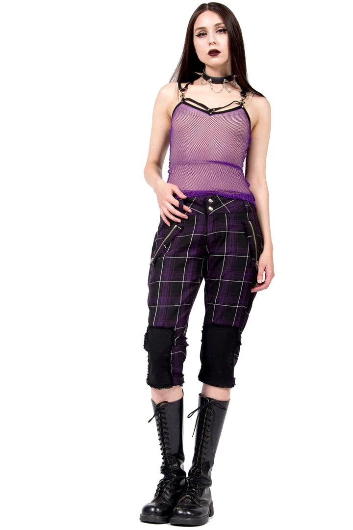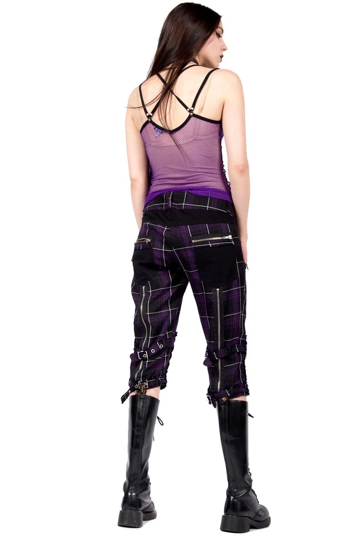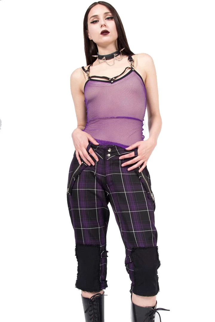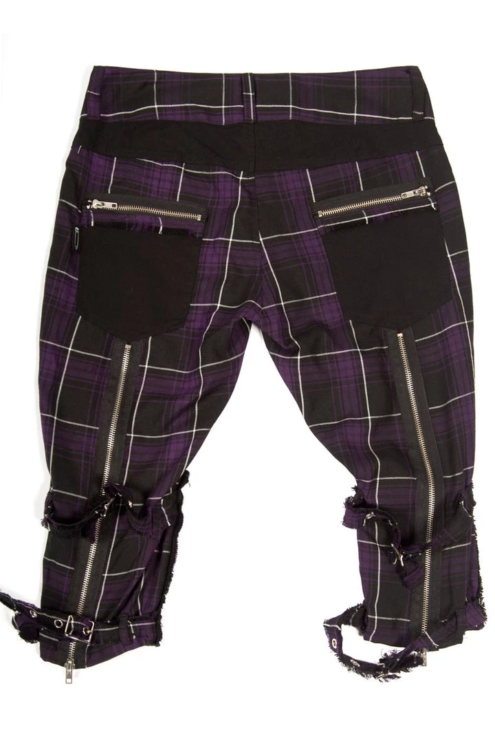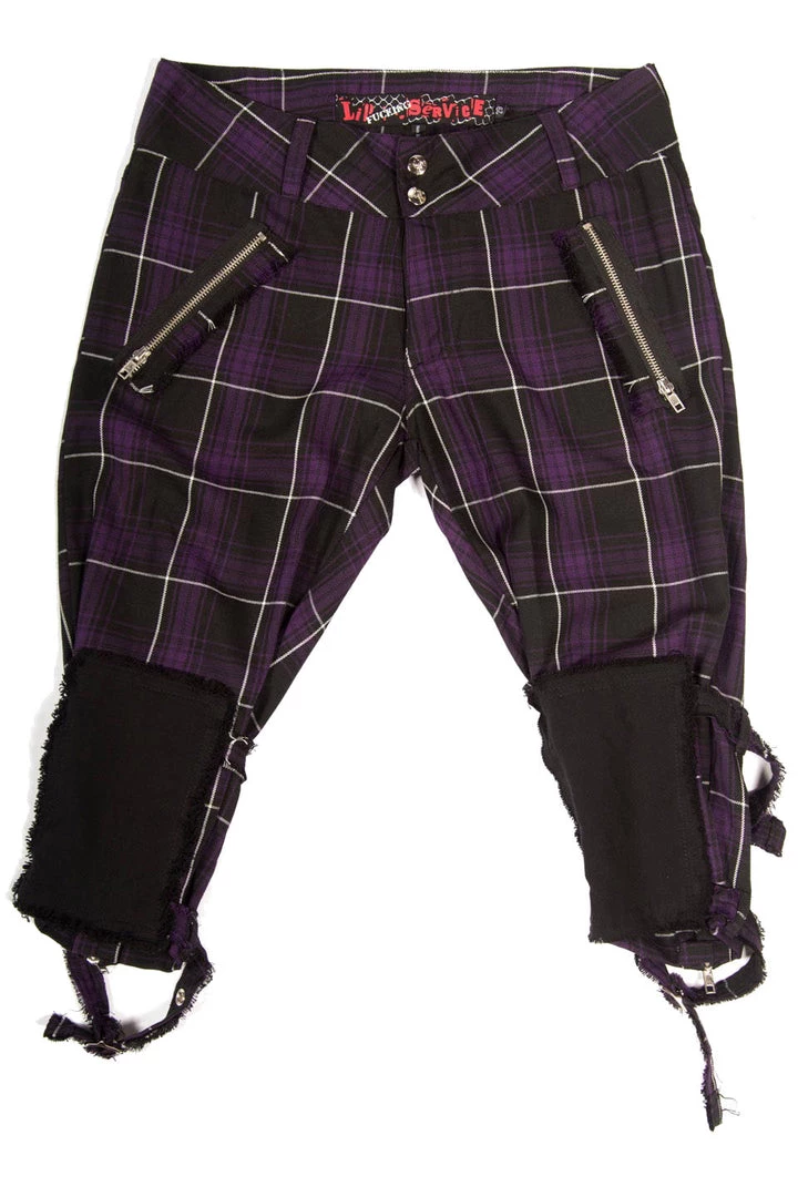 Lip Service Vintage “PUNK & DISORDERLY” Purple Plaid Twill Capri Shorts 2010 These are classic and loaded with raw edge and buckle details…