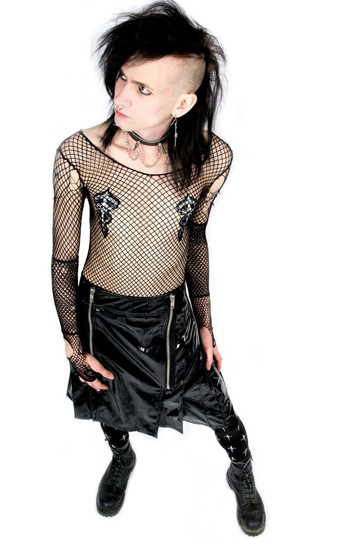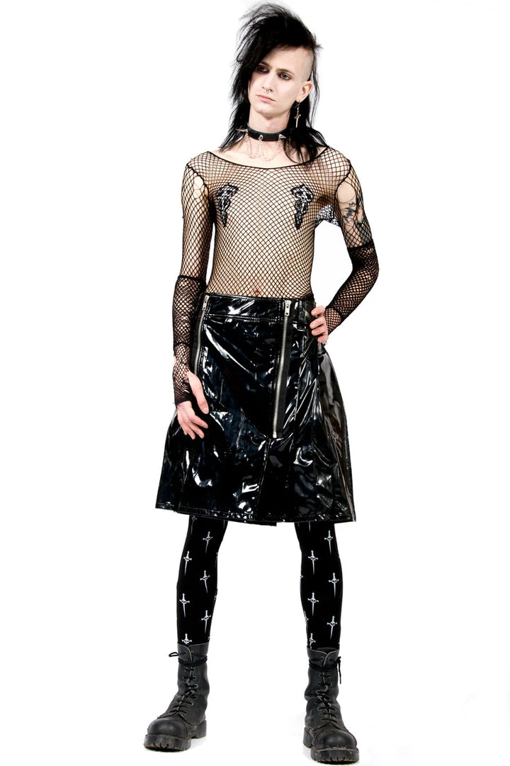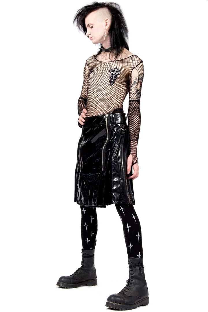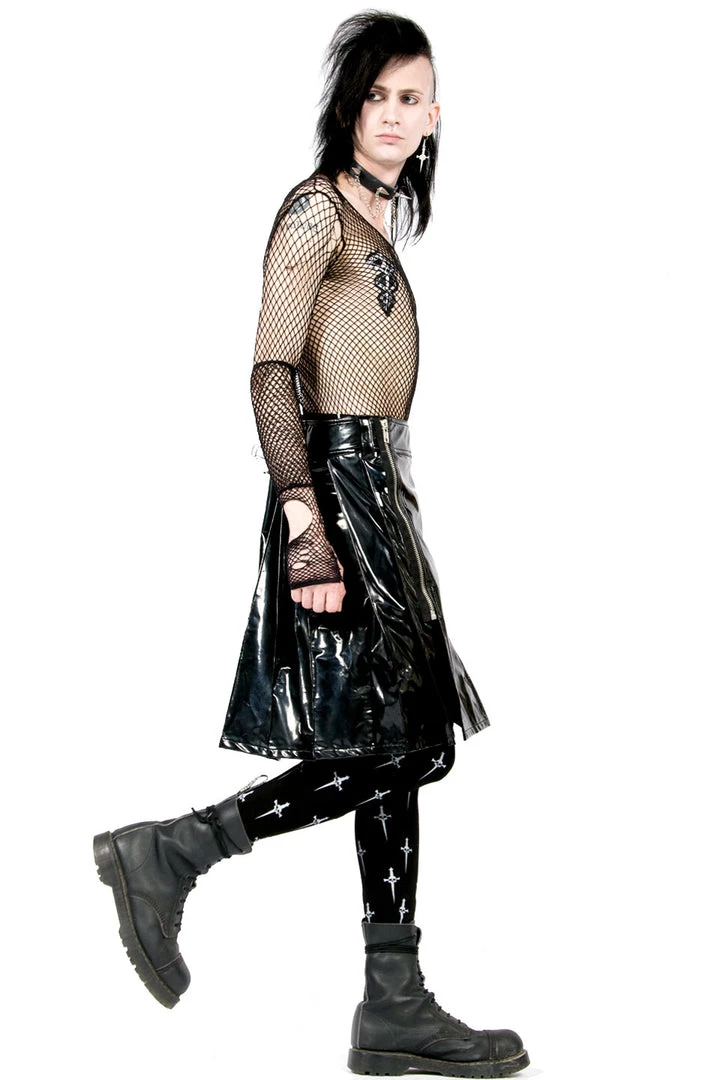 LIP SERVICE CLASSIC PVC KILT! ROCK , GOTH, INDUSTRIAL WHAT EVER THE FUCK ….WE LOVE GUYS IN SKIRTS !!! DOUBLE FRONT ZIPPER DETAIL, FAT D-RING IN THE BACK AND A SIDE POCKET….