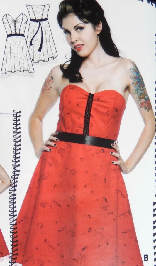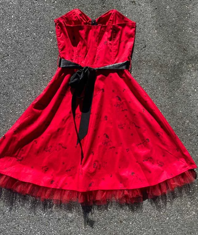 Lip Service Vintage ROCKABILLY RUMBLE PIN UP DRESS , Girls All over print w/ removable belt, boning and Tulle underlayer.