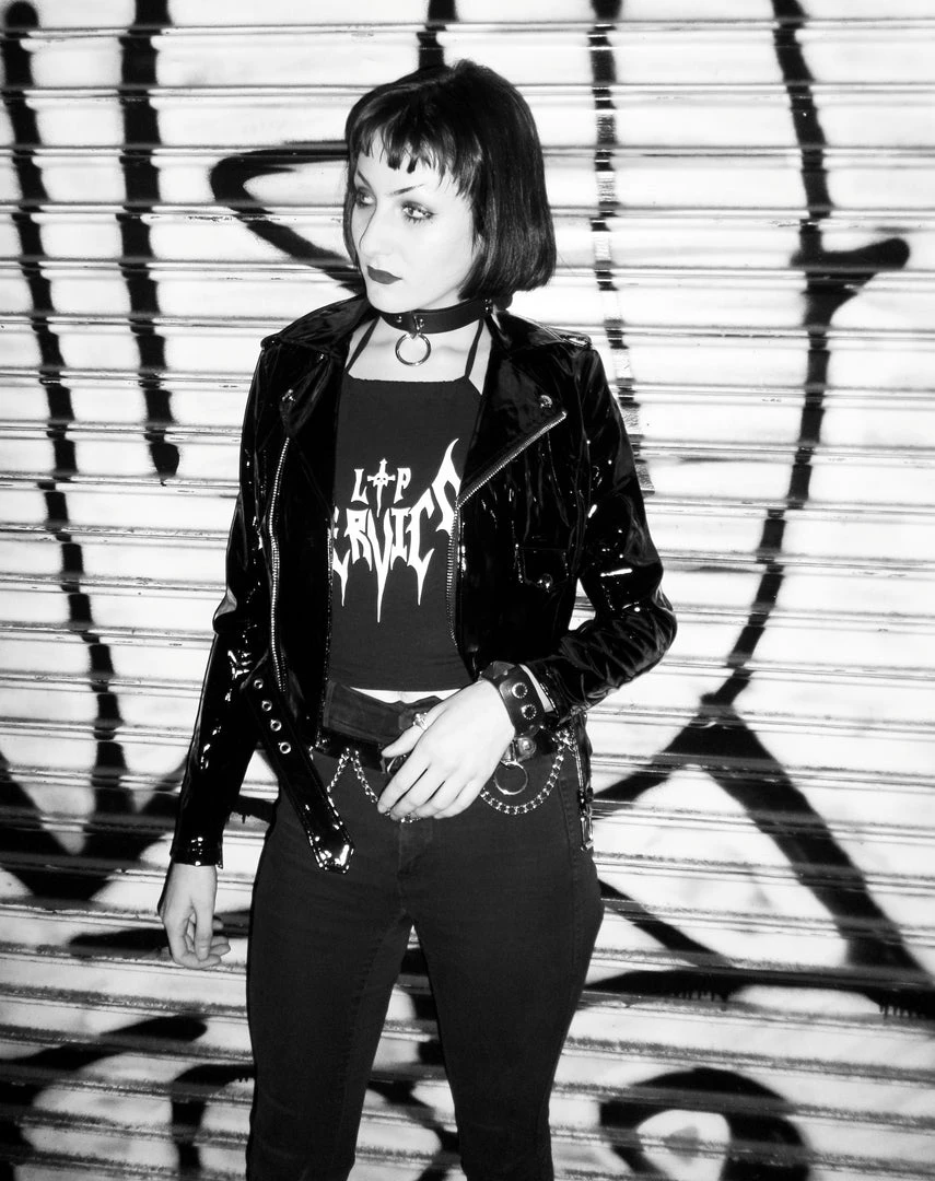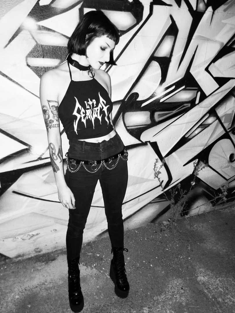 The Old School Logo remastered by Riddick. The classic tie back halter shape is perfect for a night out.
