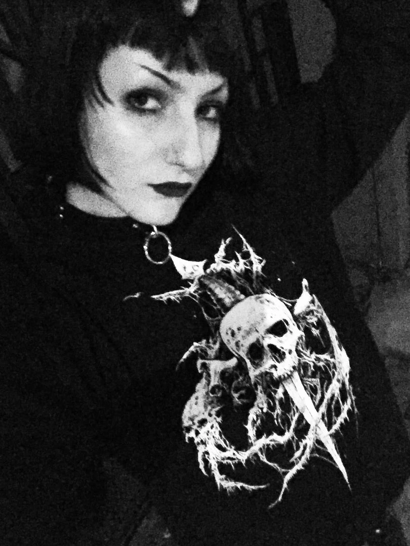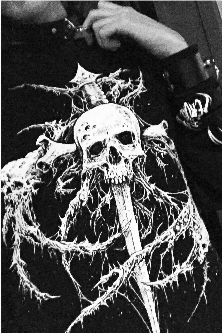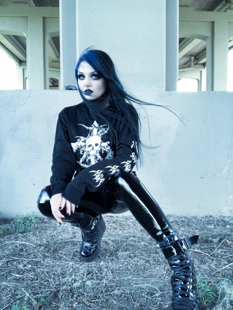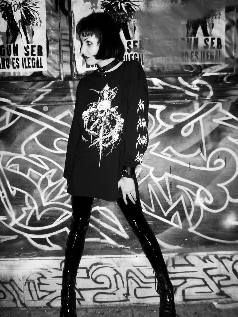 The Lip Service Logo illustrated by Riddick on a classic long sleeve black tee.