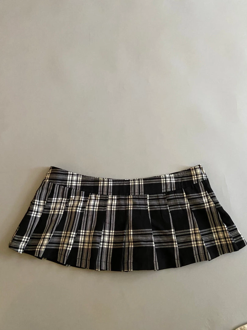 Black and white twill plaid micro mini. Size Med. Style #46-366. Waist 32″ Center Front 8.5″